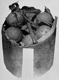 DIAMETER: 6.25 inches GUN: 32-pounder Smoothbore, 6.4-inch Caliber LENGTH: About 8 inches WEIGHT: About 30 pounds CONSTRUCTION: Canister SABOT: - FUZING: None